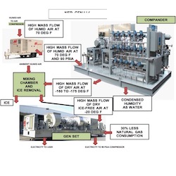 2. High mass flow of super-chilled air from two-stage, free-spooling companders to generate a high mass of super super-chilled air for medium-size flows of wastewater. Or